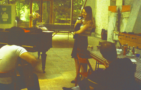 This atmospheric picture was taken by Ricky Gardiner at the Chateau D’Herouville during his time at the Low sessions with David Bowie. As you can see Mary Hopkin and Brian Eno are at the far end of the breakfast table. David Bowie is seated at the far right in one of two comfortable chairs. In the other chair is Morgan Visconti, son of Mary Hopkin and Tony Visconti, who kindly revisited this image. I love the vintage paraphernalia at the far end of the room: the old TV, video player, which I believe was used to watch Monty Python, the upturned blue heart on the pink poster and the random potted plants.